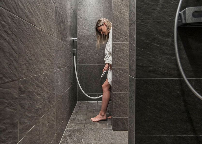 Outside you will find a Kneipp basin and a covered lounge, which invites you to linger between the sauna sessions.
